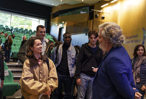 Interrogé par deux étudiants, il a raconté les secrets de la success story « Veepee », partagé son expérience d’entrepreneur et a expliqué la force du réseau des diplômés.